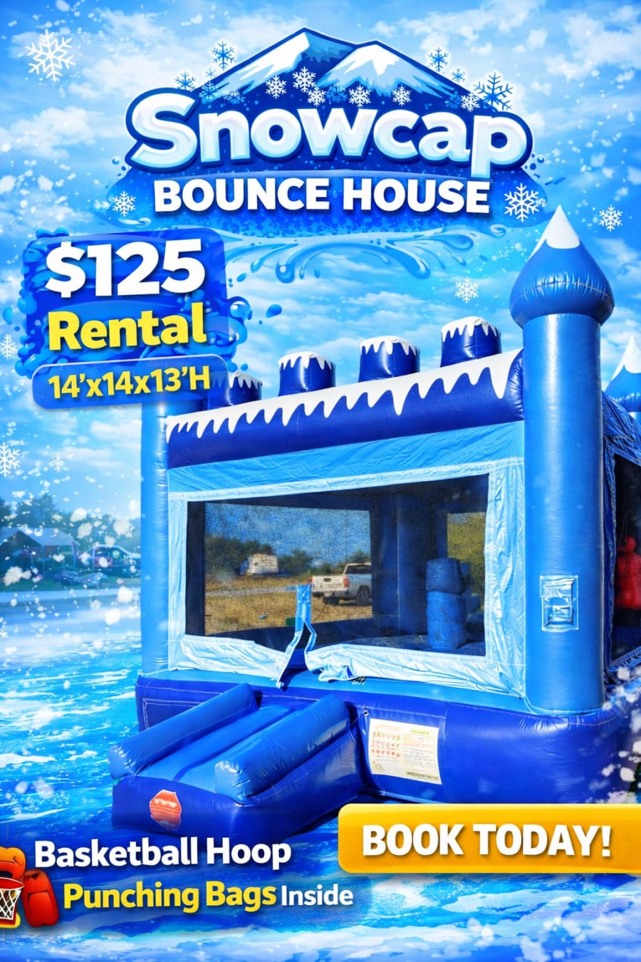 Snow Cap is a snowing moon bounce that turns any event into a winter wonderland. Fast to set up. Safe for kids. Eye-catching snow effect. Perfect for birthday parties, corporate family days, school festivals, and holiday events.