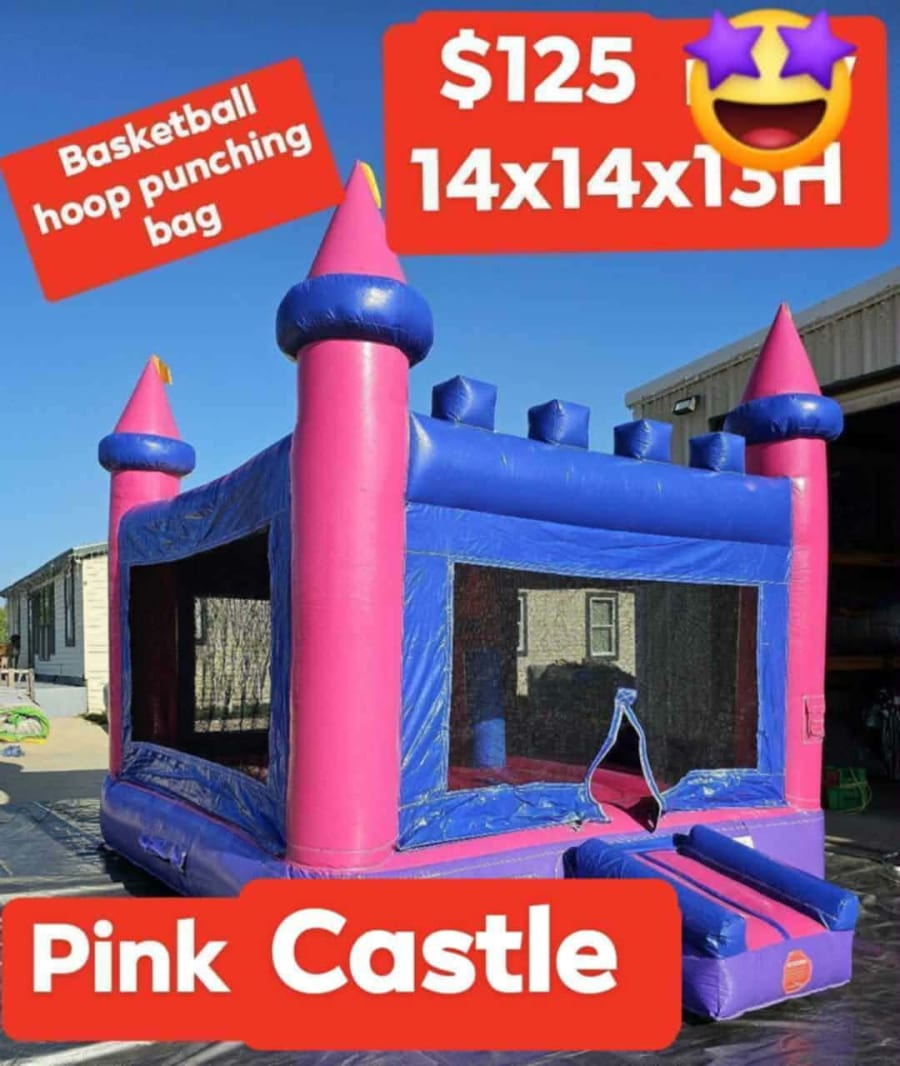 Rent the fun. The rental Pink Bright Castle in san antonio is a vibrant, pink small bounce house built for smiles. Bright colors and compact design make it perfect for birthday parties, school events, and backyard celebrations. It includes an internal hoop and punching bag for extra play value. Safe. Stylish. Easy to set up. 💖🎈