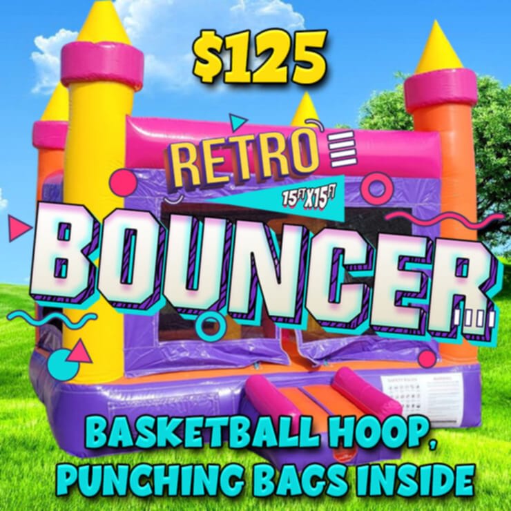 retro brings back vintage fun with bold, classic hues and an inside hoop for target play. Perfect for themed parties, photo ops, and energetic events. Book our rental retro in san antonio all area and add instant nostalgia to any celebration. 🎉