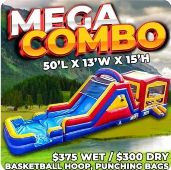 Elevate your next event with the Mega Combo. Fast setup. Big fun. Reliable safety. Contact us now to check availability and reserve the ultimate inflatable attraction for your party. Ready, set, bounce! 🚀