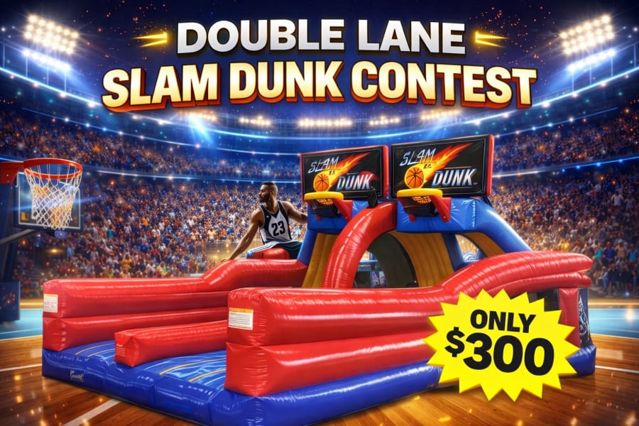 Safety tip: Always supervise play and use spotters for high-energy jumps. The Two Player Slam Contest delivers repeatable thrills and memorable photos. Perfect for event planners who need a reliable, high-impact attraction. Book your Two Player Slam Contest today and make your next event the slam dunk it deserves to be! 📅🔥