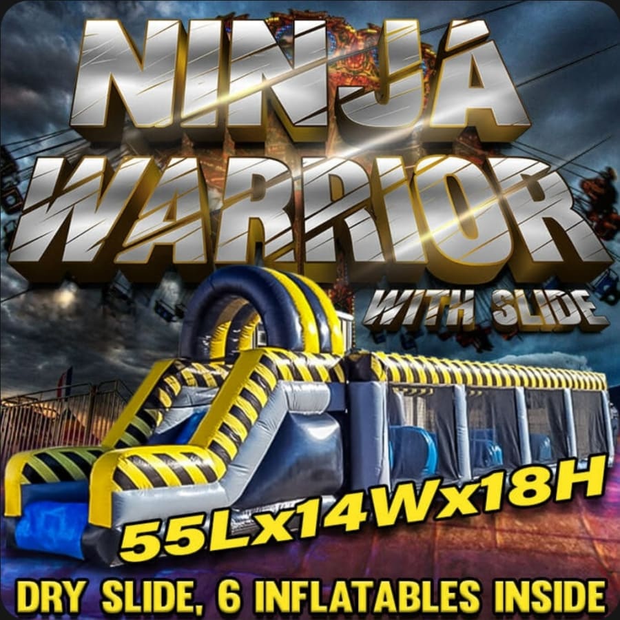 Looking to rent Ninja Warrior This dry Ninja Warrior obstacle course is built for speed and thrills. It features a slide and six big inflatable balls that test balance, agility, and endurance. Perfect for birthday parties, team-building, school events, and community festivals. Fast setup. High excitement. Memorable races.