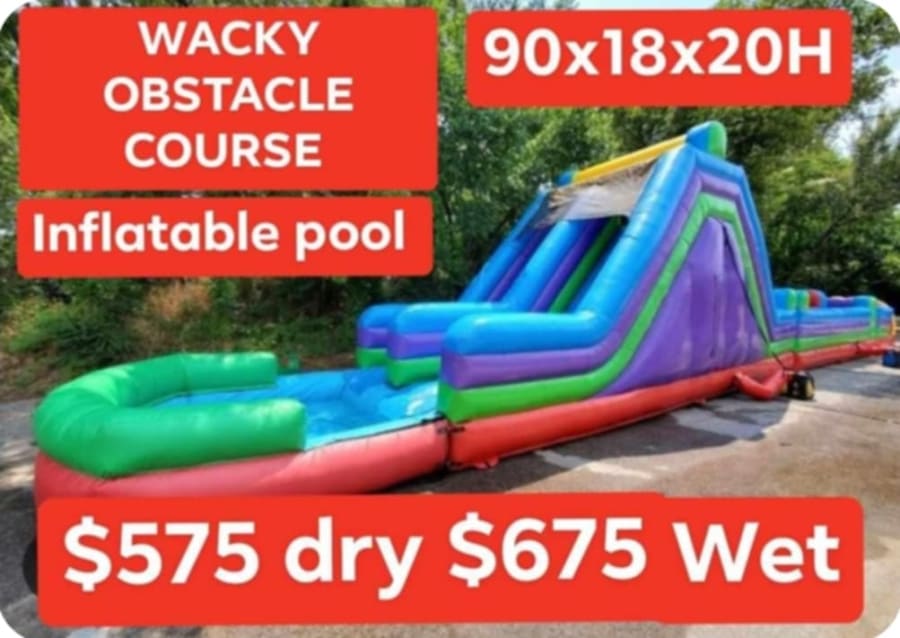 Make your next party unforgettable. Our rental Wacky Obstacle courses in San Antonio all area deliver wet, wild, family-friendly competition. Win or lose this race — wacky fun with splash a pool. Perfect for birthdays, block parties, corporate family days, and summer events. 🏁💦