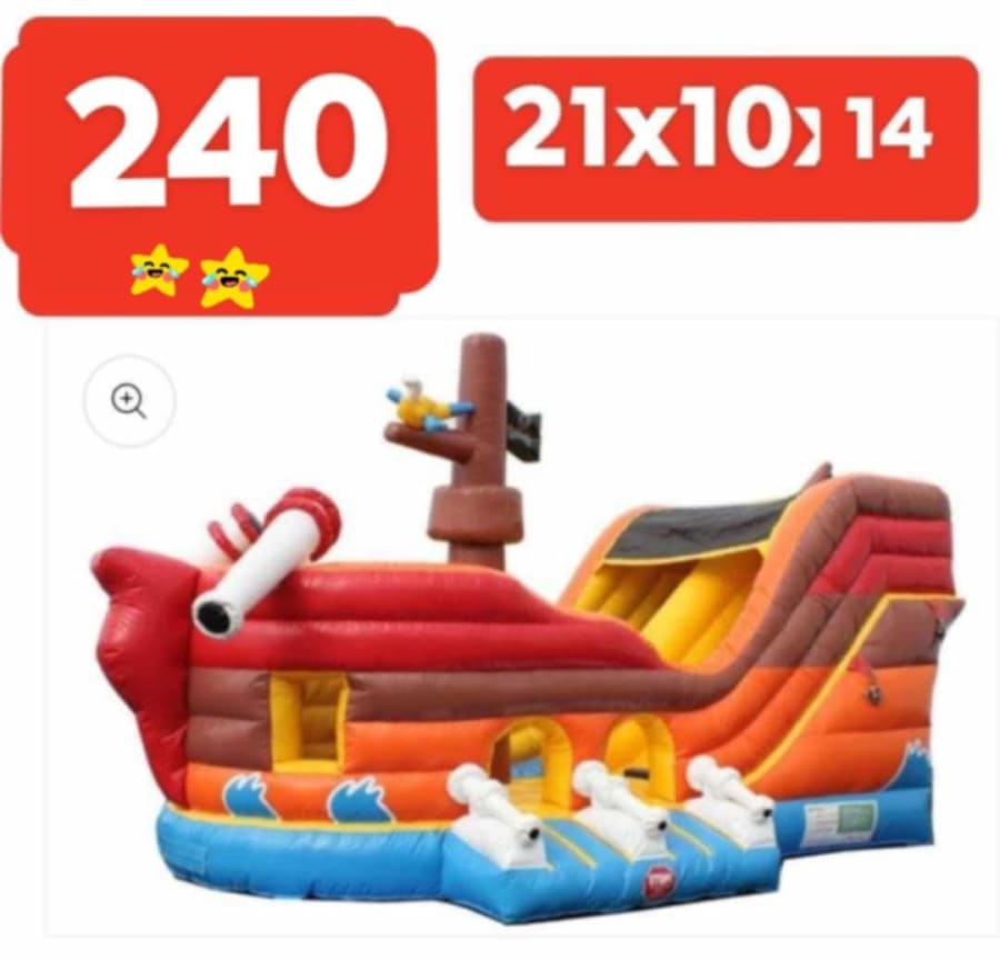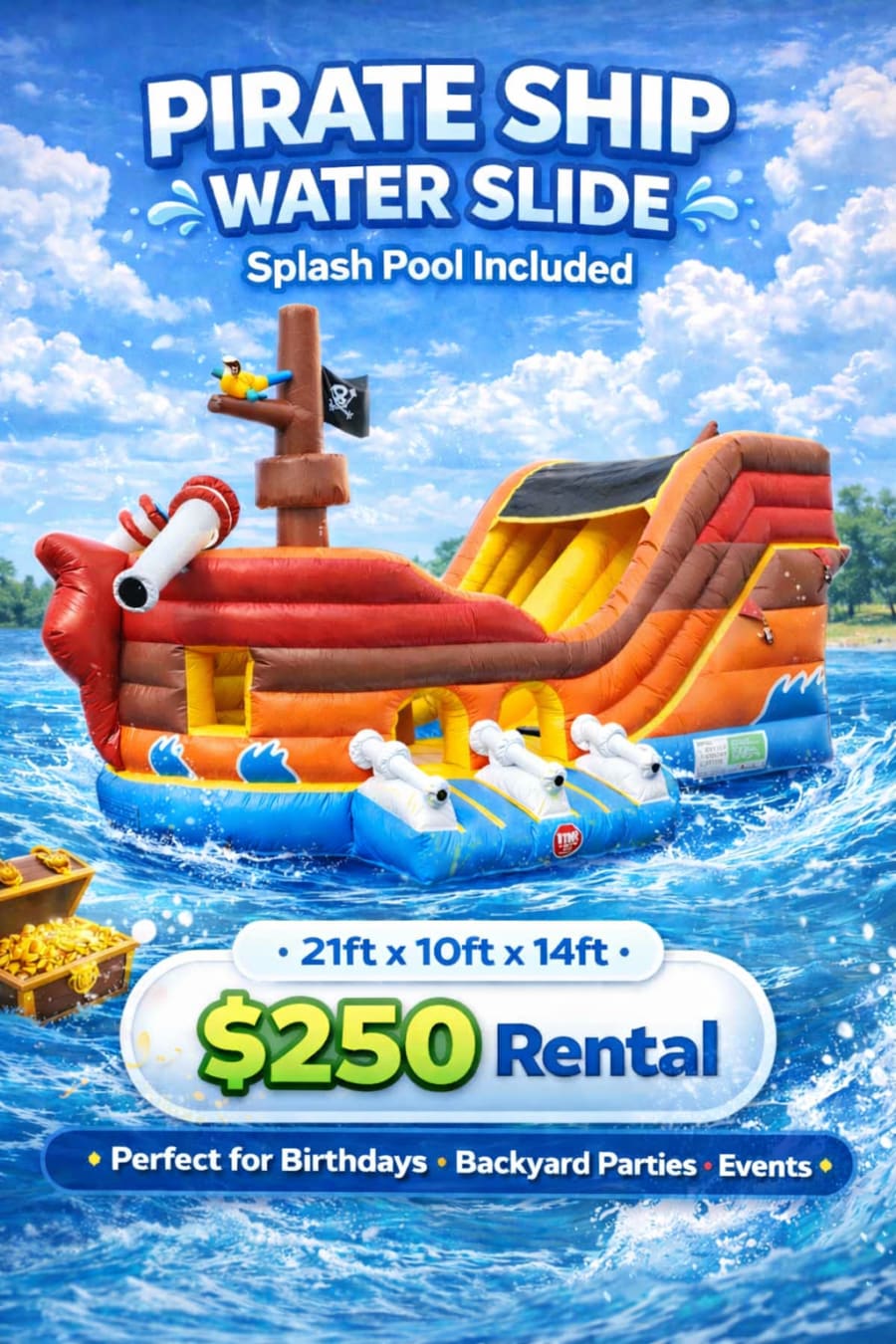 The Ship is a standout water attraction built for high-energy play. This Ship with cannon, two slide and splash area combines visual impact with nonstop fun. Durable materials and smart design keep kids safe while they climb, slide and soak. Perfect for parks, events and backyard blowouts. 🎉