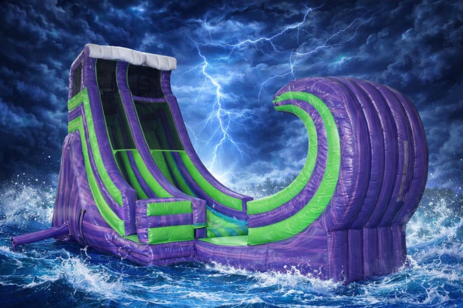 The Typhoon water slide is a towering 19-foot purple water slide that delivers adrenaline-pumping thrills and splash-ready fun. πŸ’œπŸ’¦ Built for big smiles and loud laughs, Typhoon combines height, speed, and color for unforgettable events.