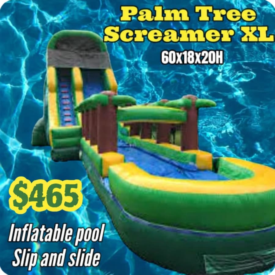 The Palm Tree Screamer XL is a show-stopping inflatable water slide built for big fun. Perfect for backyard parties, community events, and rentals. It delivers thrilling speed, tropical style, and reliable safety. Easy to set up. Built to last. Ideal for kids and teens who want an adrenaline rush under the sun. 🎉🔥